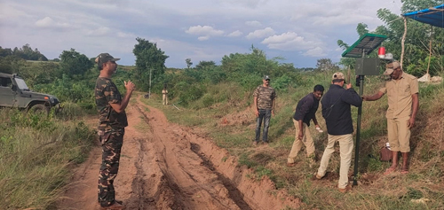 The system relies on physical movement being detected when the active beam of the sensors are interuppted by the body of the animal. The interruption is passed onto the central control unit . On detection , two things happen rapidly. A high decibel siren goes off and a beacon light is turned ON for 30 secs. The red beacon light is for visual indication, in the night, of the breach point. An SMS is sent out to 5 pre-programmed numbers about the possible exit of an elephant from the forests and entering the adjoining fields. The siren is used to wake up the farmer guarding his crop and at the same time to dis-orient the elephant and giving the farmer or the person guarding the potential breaching point time to react and apply scaring tactics like shouting, flashing lights or bursting crackers.